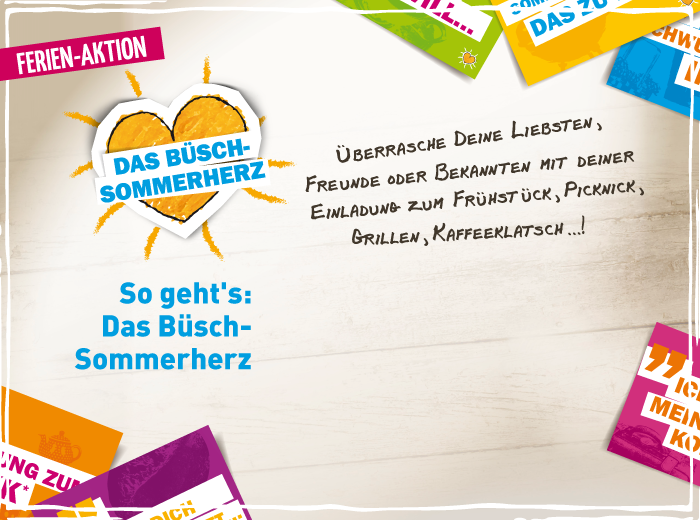 Übrigens... wenn Du die Karte per Post verschickst, bekommt der Empfänger bei Abgabe der Karte in einer Büsch-Filiale seiner Wahl 4 knackige „Das Büsch“ gratis!