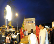 Auch der Transport erforderte starke Mitarbeiter: Das nötige Backblech war einen Meter länger als der längste Rolls Royce und musste von einem Dutzend Mitarbeitern getragen werden. Angebissen werden durfte die süße Sonya da allerdings noch nicht: Dieses Vergnügen war den Hunderten von Edeka-Besuchern vorbehalten, die jeweils ein Stück vom süßen Glück vernaschen durften und für die umliegenden Kindergärten einen Beitrag spendeten.
