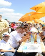 Hier sehen Sie Impressionen der Bäckerei-Büsch-Tische auf der A40 an der längsten Tafel der Welt!