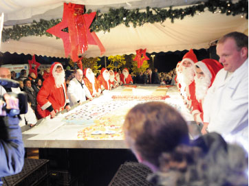 Soviel Emanzipation musste sein: Die Bäckerei Büsch stand schon mit einem Riesen-Lebkuchenmann im Guinness-Buch der Rekorde. Jetzt musste auch mal eine Riesen-Lebkuchenfrau gebacken werden! Stolze sieben Meter lang war sie und wurde von den Besuchern bei Edeka Hundrieser in Essen-Haarzopf vernascht.