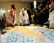 helfende Hände nötig gewesen. Die Riesen-Teigplatten sollten schließlich nicht nur halten, sondern auch den hohen Geschmacksanforderungen der Handwerksbäckerei Büsch entsprechen.