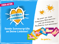 Ab sofort klebt auf jeder Sommerherz-Brötchentüte eine der 6 fröhlichen Grußkarten, die Du an alle, die Dir am Herzen liegen, mit fröhlichen Sommergrüßen überraschen kannst! Einfach die Karte abtrennen, vollständig ausfüllen und an die Liebsten, Freunde oder Bekannten versenden.